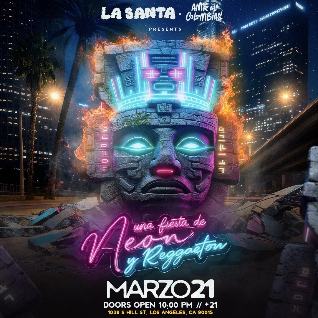 La Santa returns to the historic Mayan with Amor a La Colombiana for a Neon y Reggaeton Latin night of perreo, culture, and high energy.